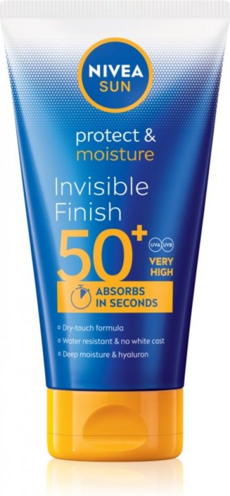 Dopřejte své pokožce výjimečnou ochranu a komfort i v těch nejžhavějších dnech. Nivea Sun Protect & Moisture Invisible Finish SPF 50+ je opalovací mléko s ultra lehkou texturou, které se okamžitě vstřebává a nezanechává bílé stopy. Zároveň poskytuje velmi vysokou ochranu proti UVA a UVB záření a hloubkovou hydrataci.