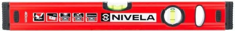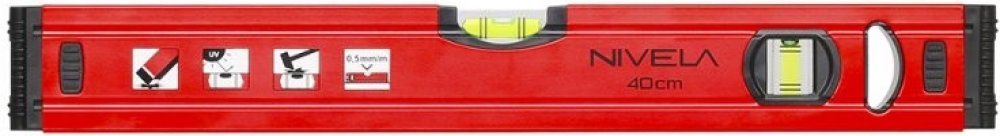 nová vodováha LIBELA se dvěma libelami přesnost zvýšena na 0,5 mm / 1 m nový hliníkový profil - síla stěny základny 2,4 mm libely zalité v nárazuvzdorném akrylátu libela s fluorescenční kapalinou - lepší viditelnost v horších světelných podmínkách vnější rysky na libele pro sklon 2 % gumové koncovky - ochrana při pádech