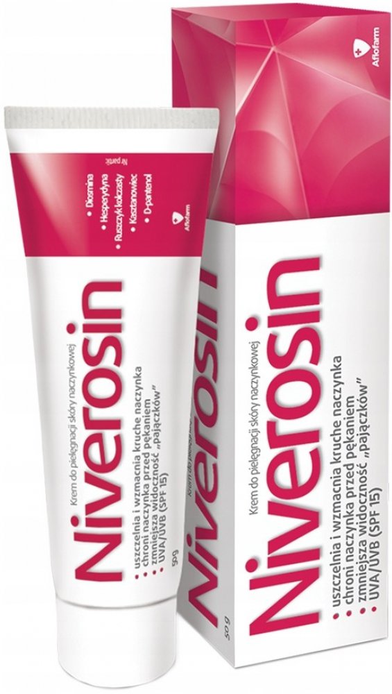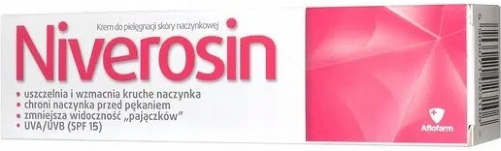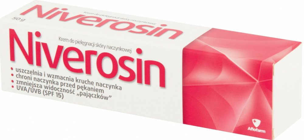 - Krém Niverosin přispívá ke zlepšení stavu a vzhledu pleti postižené dermokosmetickými defekty, jako je lokální zarudnutí způsobené oslabením a praskáním stěn malých kožních cév.