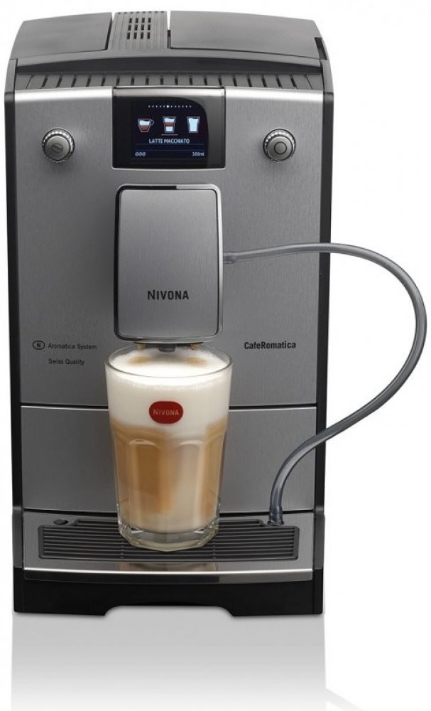 NIVONA NICR 769 je určen pro milovníky espressa i mléčných nápojů, které se díky funkci ONE TOUCH připravují snadno - jedním jediným stiskem. Výroba mléčných nápojů, jako je cappuccino nebo latte macchiato, je zajištěno pomocí samonasávací napěňovací trysky, která dokáže vyrobit nejen páru, ale i horkou vodu. Tryska je umístěna přímo v hlavě s tryskami na kávu, takže není třeba přesouvat skleničku či šálek. Stačí jen ponořit sací hadičku do nádobky s mlékem a vybrat si na displeji nápoj.