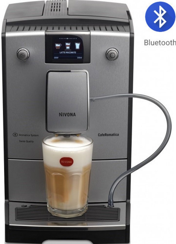 Jedná se o inovovaný model kávovaru NIVONA NICR 768. V moderním stříbrném provedení s 3D efektem se stane ideálním doplňkem do každého interiéru. Jde o kávovar s ONE TOUCH ovládáním (vše jedním stiskem), barevným displejem a BLUETOOTH připojením, díky kterému můžete přístroj ovládat pomocí chytrého telefonu nebo tabletu, sledovat statistiky, nebo měnit nastavení nápojů.