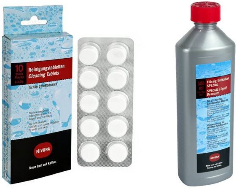 Nivona NIRK703 500 ml je tekutý odstraňovač vodního kamene pro kávovary značky Nivona. Můžete být použít i pro všechny automatické kávovary jiných značek. Produkt je šetrný k materiálům, ze kterých je kávovar vyroben.Automatické kávovary značky Nivona jsou vybaveny integrovaným programem na odstraňování vodního kamene. Pravidelným odstraňováním vodního kamene šetříte vaše zařízení a prodlužujete jeho životnost. Láhev o objemu 0,5 litru vystačí na 5 čisticích procesů.Nivona NIRT 701 čistící tablety 10 ks jsou určené pro automatické kávovary značky Nivona. Tablety NIRT 701 jsou speciálně vyvinuté k rozpouštění nečistot a optimálně odstraňují např. tuk z kávových zrn. Pravidelné čištění šetří váš kávovar a garantuje intenzivní aroma připravované kávy. Poznámka:• Přesný popis použití tohoto výrobku naleznete v návodu svého přístroje.Součástí balení jsou 1 ks Nivona NIRK703 odstraňovač vodního kamene 500 ml + 1 ks Nivona NIRT 701 čistící tablety 10 ks.