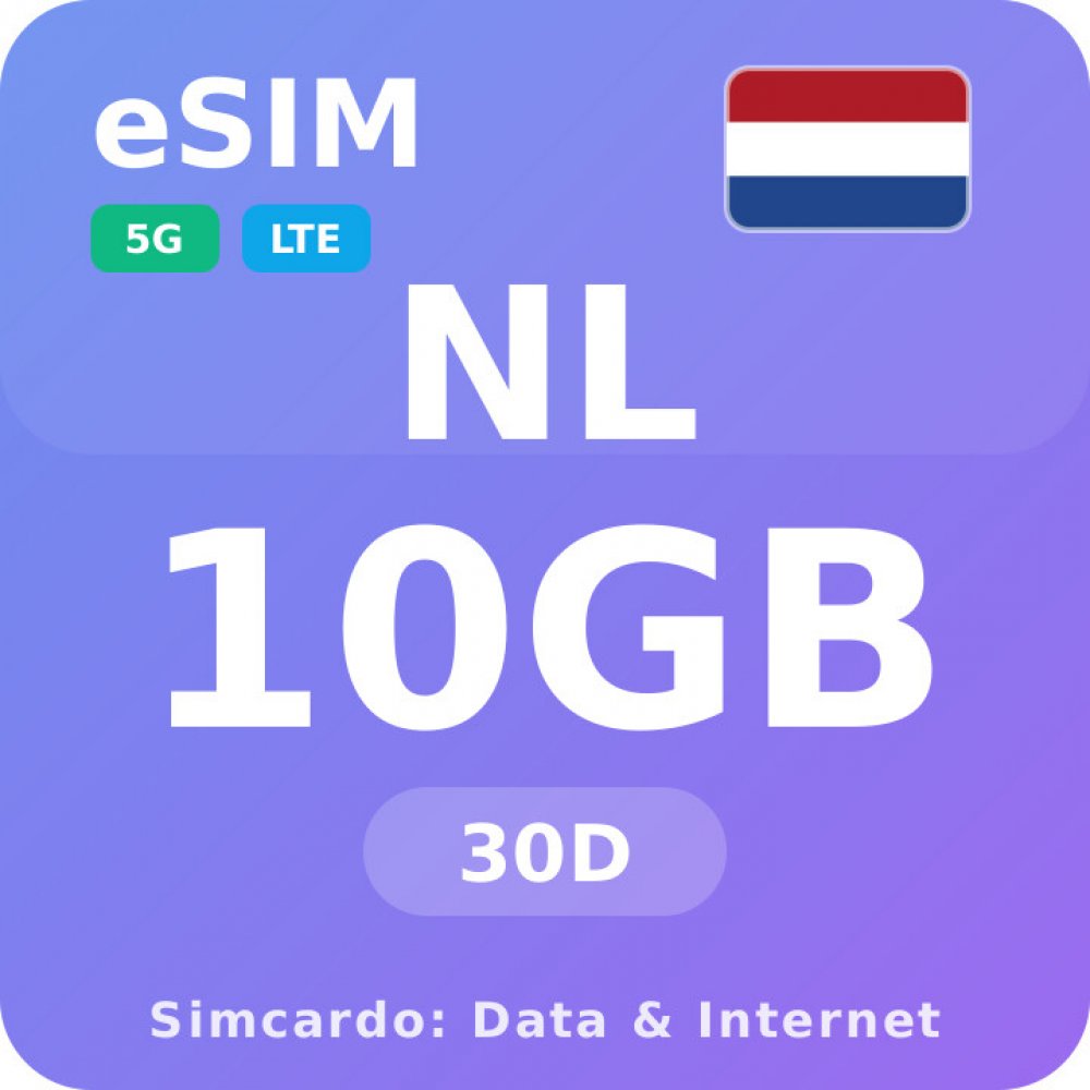 Mobilní datový plán pro Nizozemsko s 10GB platný na 30 dní.