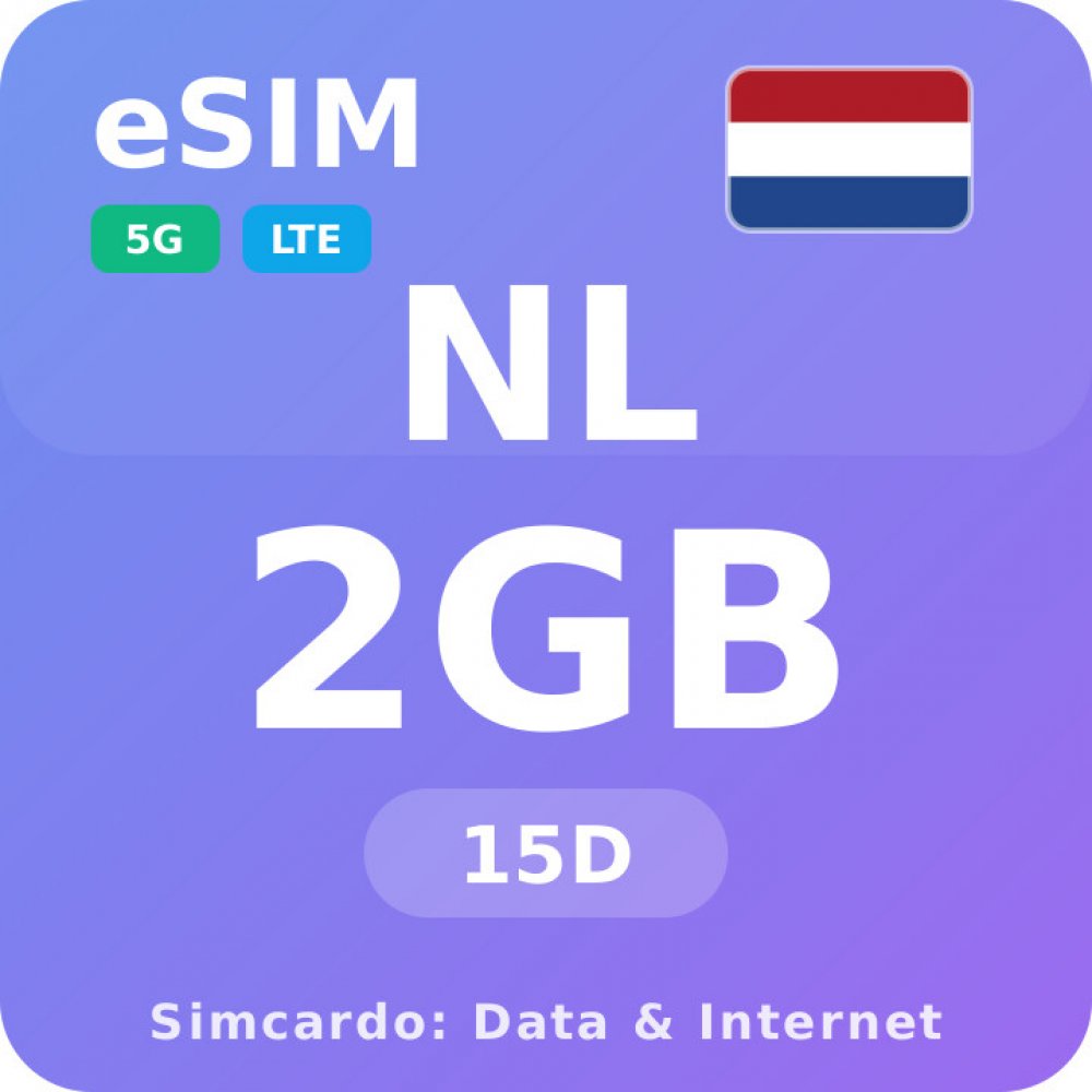 Mobilní datový plán pro Nizozemsko s 2GB platný na 15 dní.