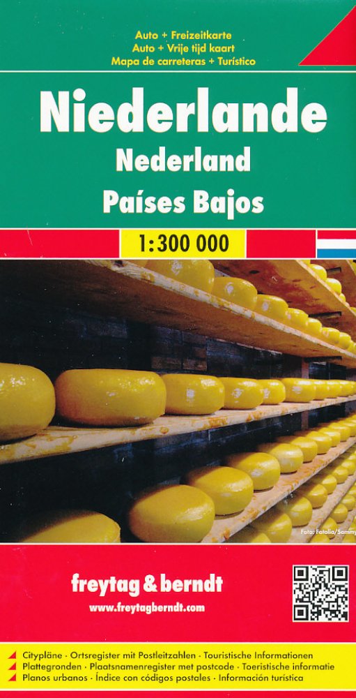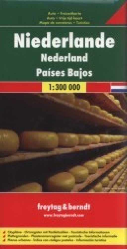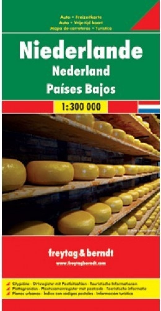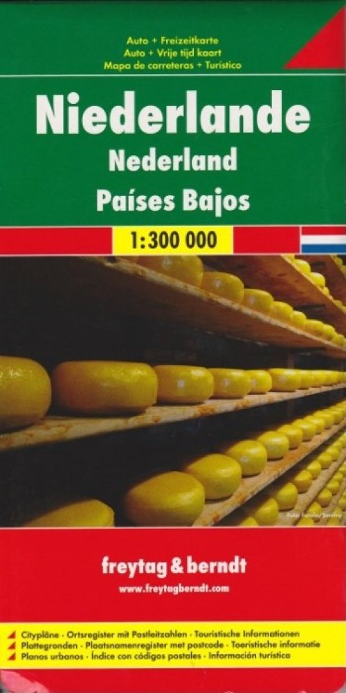 Jednostranná automapa Nizozemí 1:300 000 od nakladatelství Freytag a Berndt. Základem motoristického obsahu je podrobná silniční síť s kilometráží, čísly silnic, zvýrazněny jsou placené úseky, sezónně uzavřené úseky. Zaznačeny jsou přírodní a kulturní zajímavosti, pamětihodnosti a možnosti ubytování. Reliéf je zakreslen pomocí stínování. Na přebalu mapy vlepena brožura s rejstříkem sídel, plány mě...