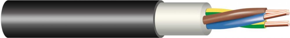 pro pevné uložení ve vnitřních a venkovních prostorách, počet žil 3, průřez vodiče 10 mm2, materiál jádra měď Cu, barva vodičů zeleno-žlutá, modrá, hnědá