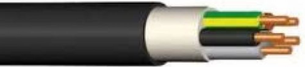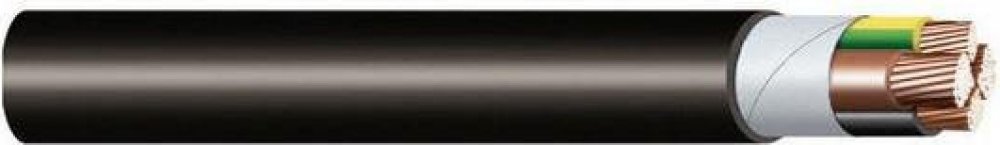 pro pevné uložení ve vnitřních a venkovních prostorách, počet žil 3+1, průřez vodiče 95 50 mm2, materiál jádra měď Cu, barva vodičů zeleno-žlutá, hnědá, černá, šedá