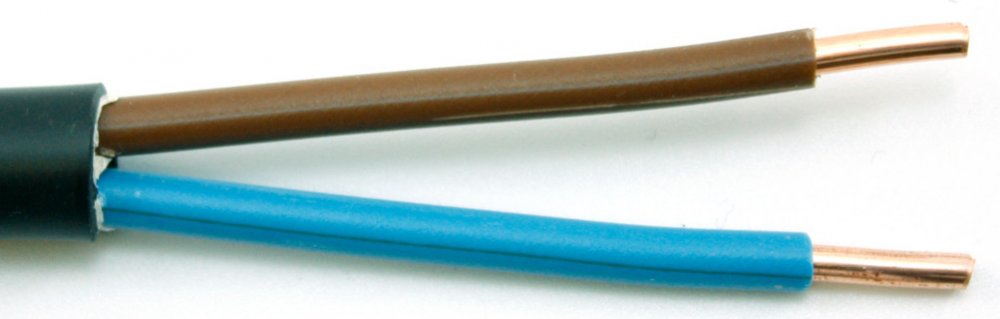 pro pevné uložení ve vnitřních a venkovních prostorách, počet žil 2, průřez vodiče 4 mm2, materiál jádra měď (Cu), barva vodičů modrá, hnědá