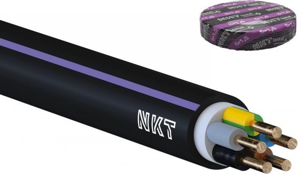měděné PVC rozvodné NKT 1,5 mm² 5 kabely CYKY černé