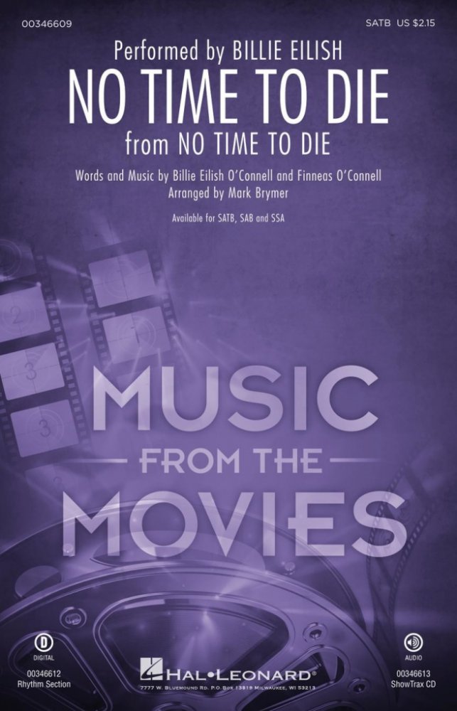 No Time to Die (Není čas umřít) je píseň ze stejnojmenného filmu z roku 2021 o agentu Jamesu Bondovi. Píseň nazpívala americká zpěvačka Billie Eilish a nyní Vám tuto krásnou píseň přinášíme v úpravě pro SATB vokální soubor s klavírním doprovodem doplněným o akordové značky. Délka písně je cca 3:40 minuty