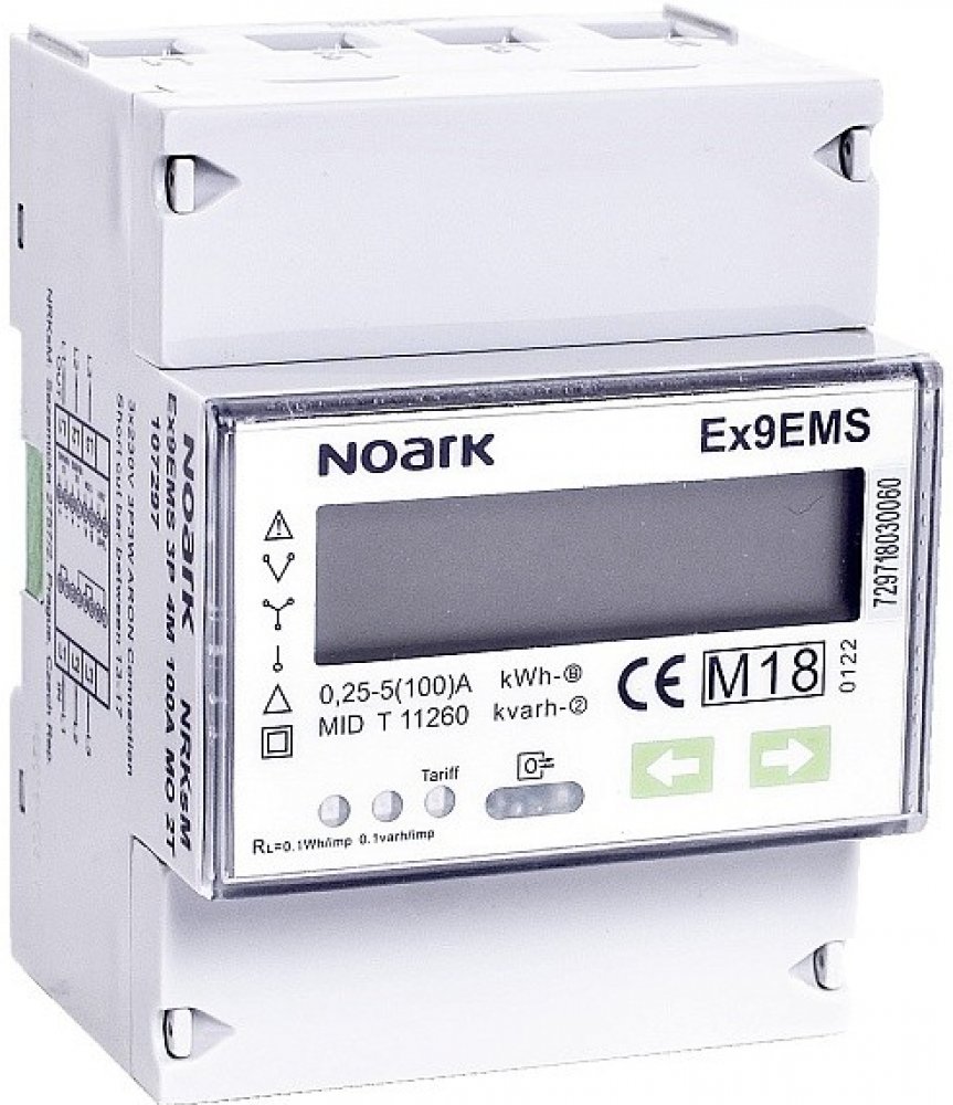 Noark 107299 Ex9EMS 3P 4M CT MB 2T Smart Elektroměr 3-polový, 4-modulový, nepřímé měření, Mbus-komunikace, 2-tarifní, LCD displej