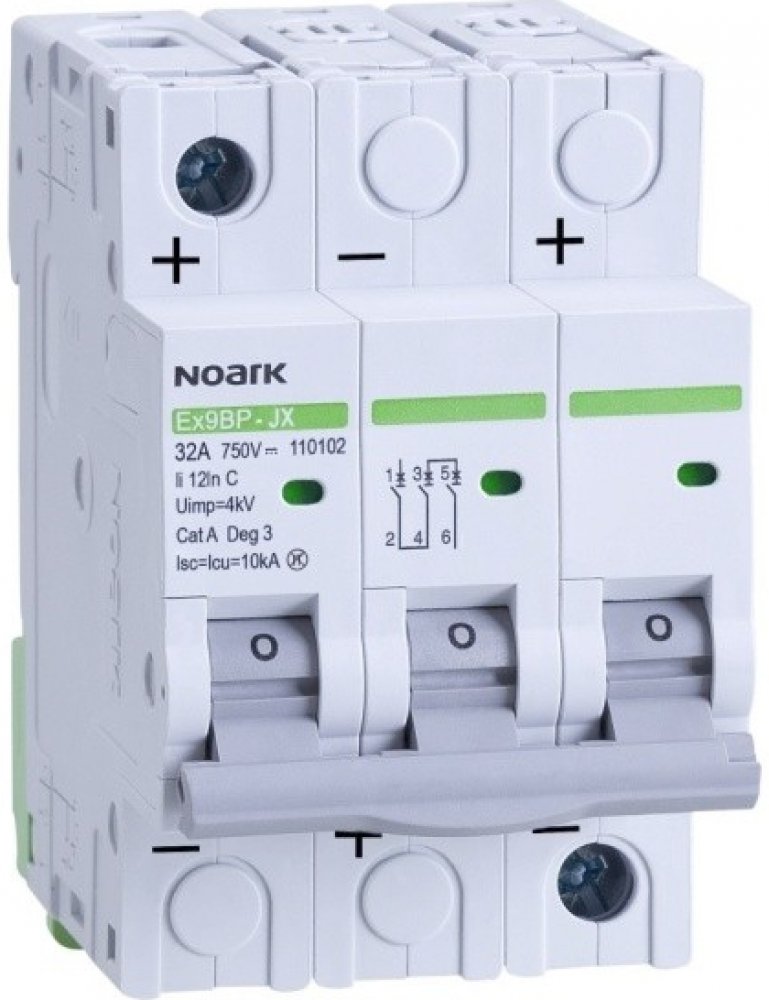 Noark 110099 Ex9BP-JX(+) 3P C16 DC instalační jistič 10 kA, charakteristika C, 16 A, 750 V DC, 3pól