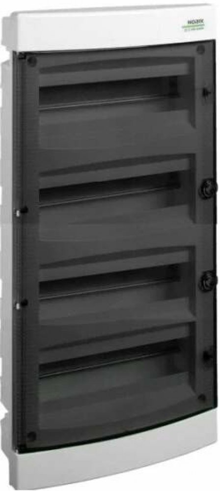 Domovní plastová rozvodnice Noark 113772 PNF 48T pro montáž pod omítku, průhledné dveře, krytí IP40, 4 řady, 4x12 modulů.