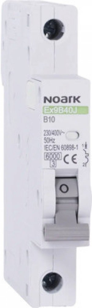 Jistič 1 pólový Noark řady slim - In 10 A, Ue AC230V, charakteristika B, 1pól, Icn 6kA, úzký modul - 13,5mm