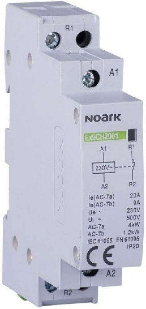 Noark 107318 Ex9CH20 31 230V 50/60Hz Instalační relé, 20 A, ovl. 230 V, 3 NO + 1 NC kontakty