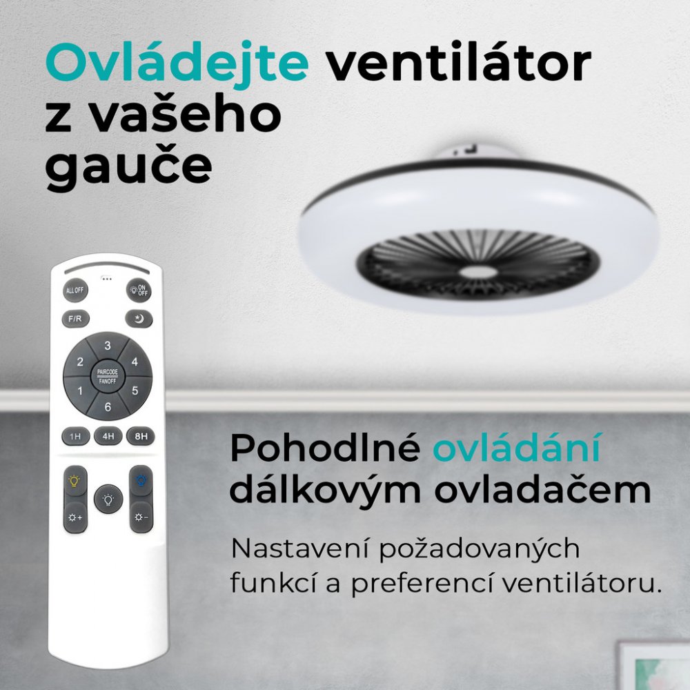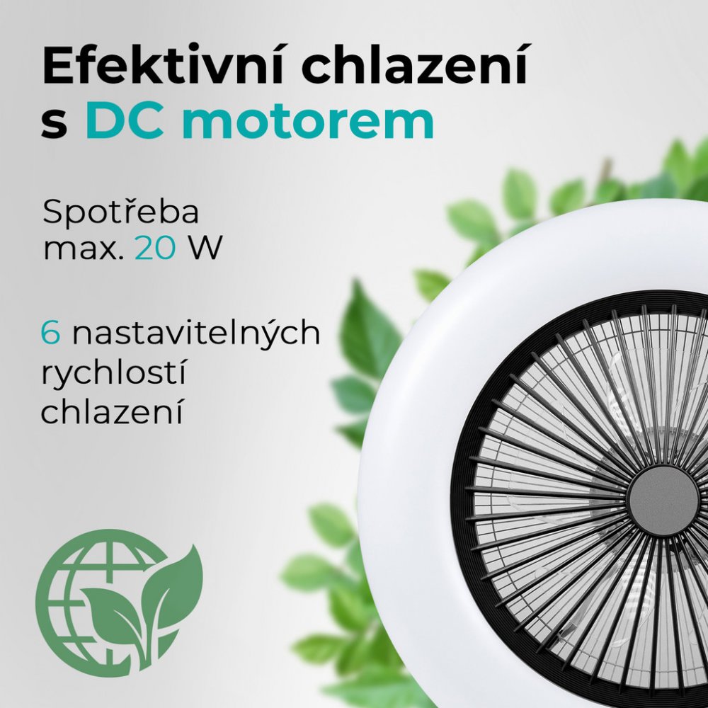 Nedílnou součástí stropního ventilátoru je jeho osvětlení. Nejedná se ale o obyčejné světlo, jako u konkurenčních výrobků, jelikož jej lze pohodlně regulovat pomocí dálkového ovládání. Barvu světla tak můžete měnit podle denní doby, nebo jednoduše podle nálady. Další zajímavou funkcí je tzv. stmívání, která umožňuje nastavení si ideálního odstínu dle potřeby.