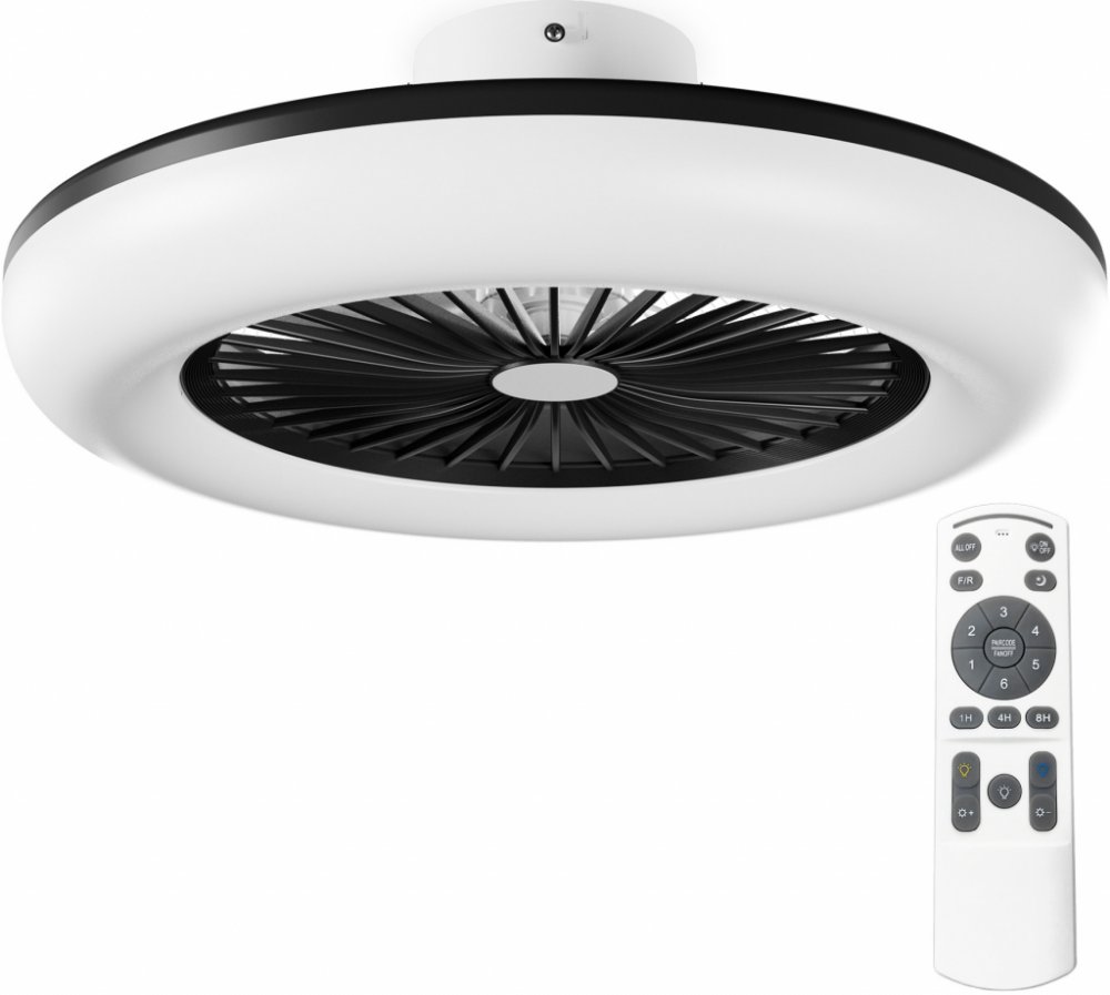 Vestavěný ventilátor s 5 lopatkami z odolného ABS materiálu nabízí 6 úrovní výkonu a tichý provoz. Díky nízké hmotnosti a úspornému chodu (maximální příkon motoru je 20W) je možné tento lustr s ventilátorem instalovat i na stěnu pod úhlem 90°. Samotné lopatky jsou navíc chráněny robustním tělem svítidla a zamezují tak případné riziko poranění.