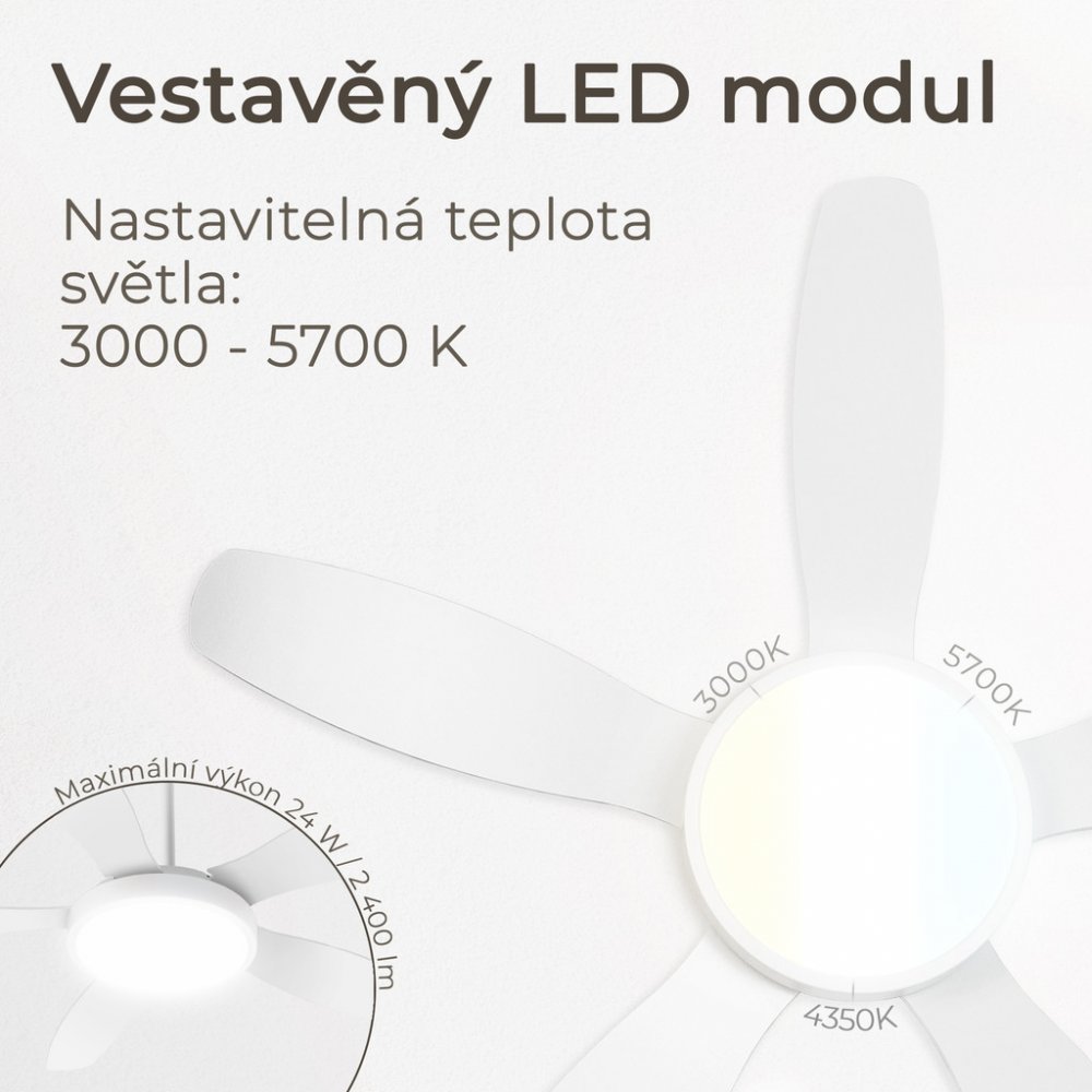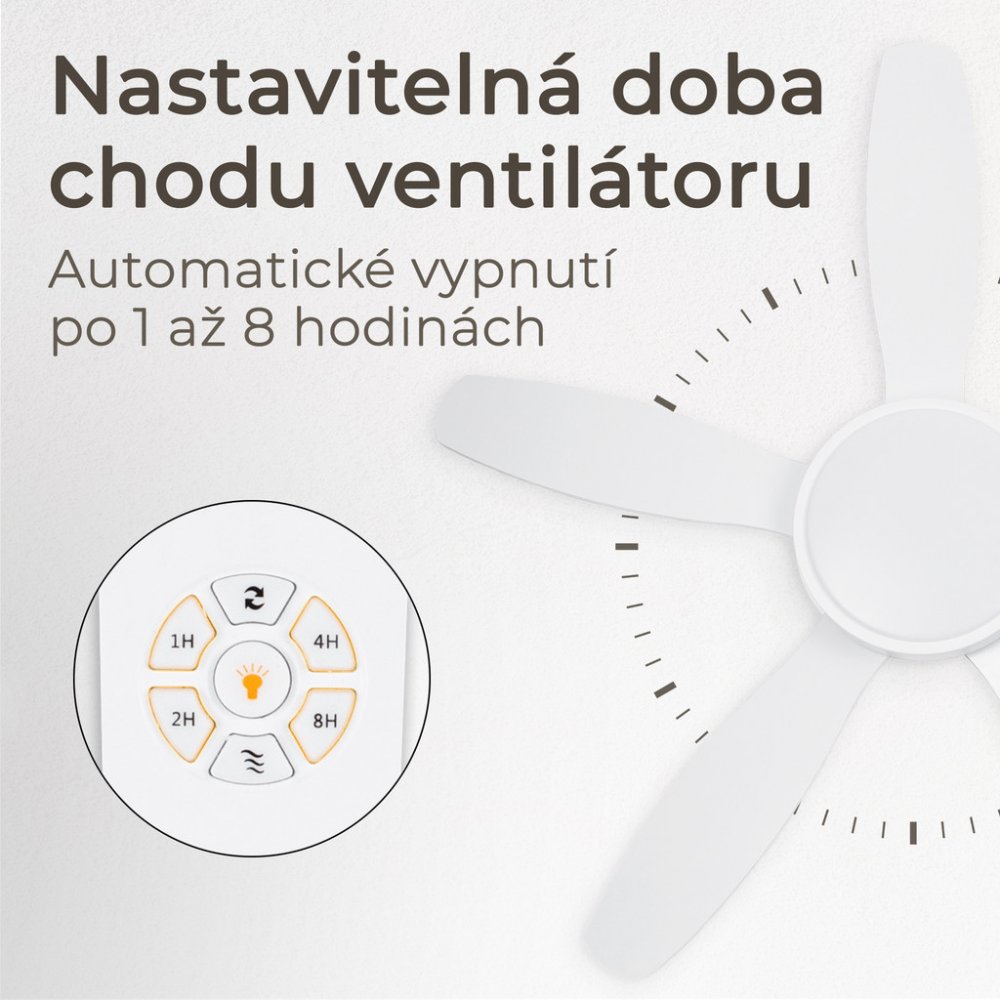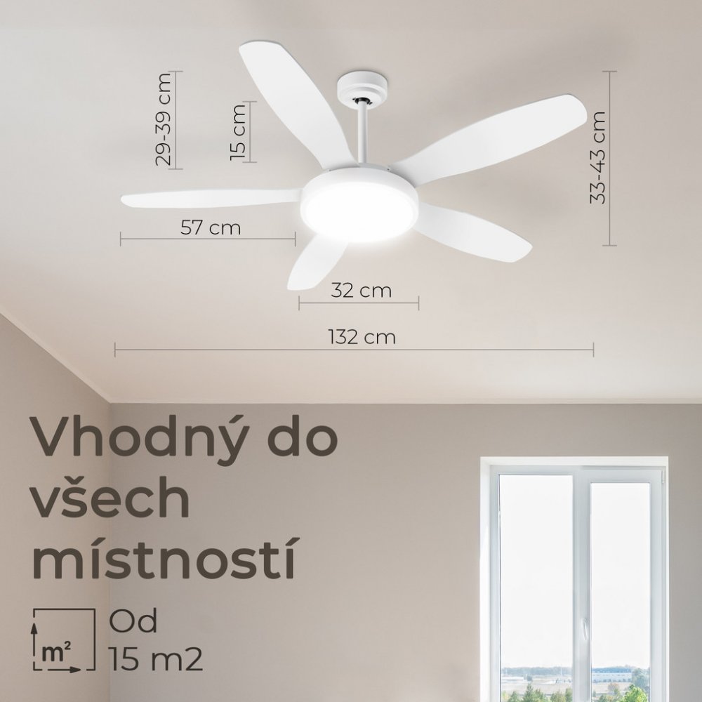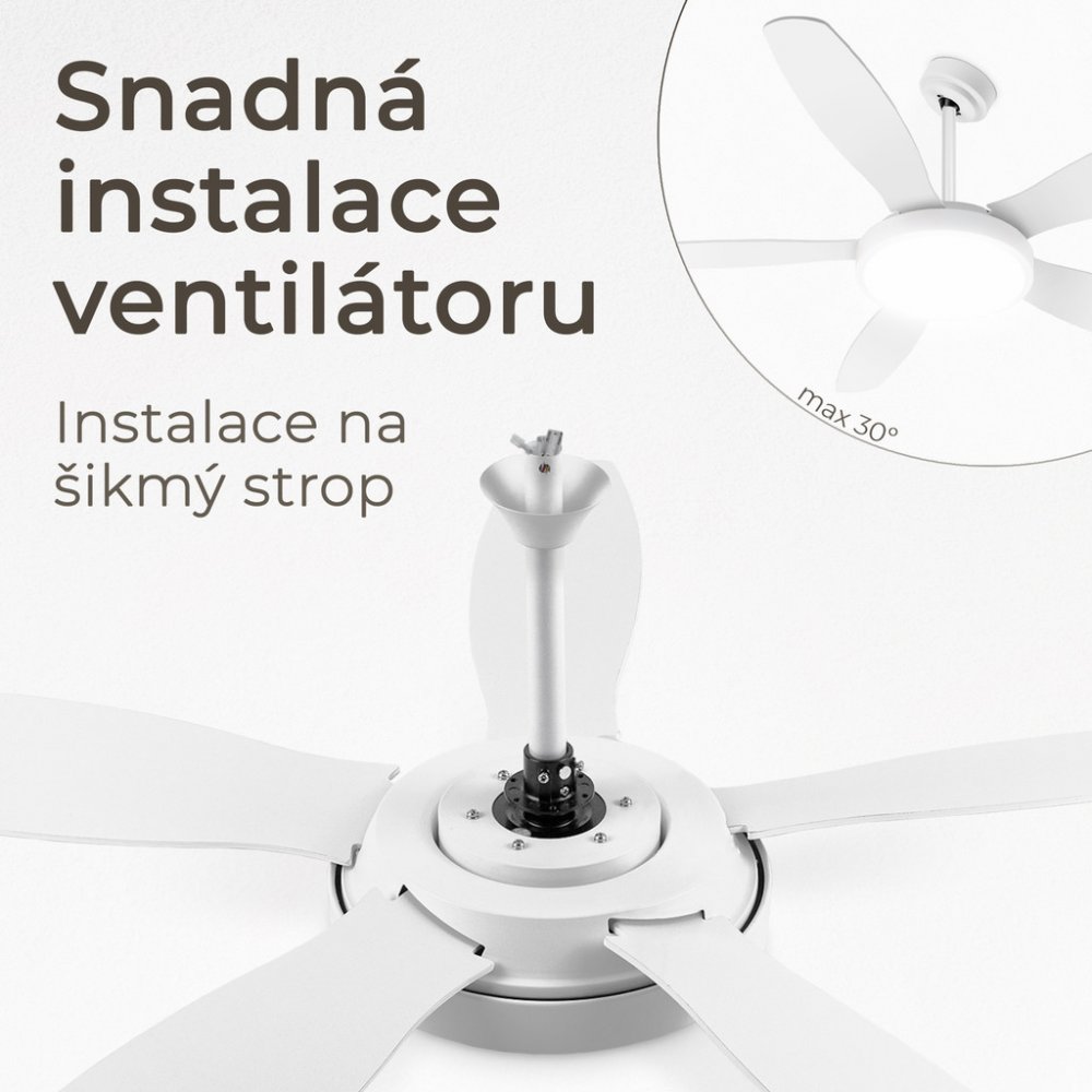 STROPNÍ VENTILÁTOR SE SVĚTLEM MAIA Tento stropní ventilátor s oboustrannými lopatkami (bílá/maia) má integrované LED světlo. Zajišťuje nejen účinné větrání, ale také osvětlení místnosti. Díky průměru 132 cm a pěti lopatkám má tento ventilátor průtok vzduchu 99 až 198 m3/min, což zajišťuje dostatečnou cirkulaci vzduchu v místnosti. Modul LED má maximální výkon 24 W a lze jej přizpůsobit teplotě světla od 3000 do 5700 K.Ventilátor se ovládá dálkovým ovládáním. Ventilátor lze namontovat na šikmý strop s maximálním sklonem 30°. Nabízí také zimní funkci (reverzní provoz) pro použití v chladnějších měsících. Spotřeba motoru se pohybuje mezi 5 W a 41 W. Všechny tyto vlastnosti zajišťují nejen funkčnost, ale také stylové vybavení každé místnosti.FUNKČNÍ PRINCIP STROPNÍHO VENTILÁTORU Stropní ventilátory jsou zařízení, která prostřednictvím průvanu ovlivňují naše vnímání tepla a chladu. Jinými slovy, v létě není třeba tolik ochlazovat vzduch, i když je v našem domě teplota 27 °C. Ve skutečnosti nám stropní ventilátor dává stejný pocit, jako když je teplota 22 °C. Kromě toho je samotný spotřebič velmi úsporný (spotřebuje méně energie než 100wattová žárovka) a lze s ním ušetřit spoustu elektrické energie. Mnoho lidí proto dává přednost stropnímu ventilátoru před klimatizací kvůli příjemnému a přirozenému vánku, který vytváří.KAM UMÍSTIT STROPNÍ VENTILÁTOR SE SVĚTLEM Při umístění stropního ventilátoru se světlem je třeba vzít v úvahu 2 věci - proudění vzduchu a světlo. Vzhledem k tomu, že ventilátor vyfukuje kužel vzduchu přímo pod sebe a poté se snáší po podlaze, je dobré jej umístit do středu místnosti nebo tam, kde může vzduch co nejefektivněji redistribuovat. Vždy mějte na paměti, že se jedná také o praktické osvětlení, proto vybírejte nejvhodnější místo pro ventilátor s ohledem na tuto funkci.Dbejte také na to, aby se v blízkosti ventilátoru nenacházely žádné překážky, které by mohly bránit proudění vzduchu nebo zasáhnout spotřebič (např. dveře skříně v horní části apod.).SNADNÁ INSTALACE A JEŠTĚ SNADNĚJŠÍ ÚDRŽBA Instalaci tohoto ventilátoru s osvětlením zvládne každý. Přístroj je dodáván se zástrčkami a šrouby. To znamená, že potřebujete pouze šroubovák a šikovnou ruku.Ventilátor se pak pomocí šroubů a hmoždinek připevní ke stropu (nebo ke stěně) a připojí se přímo k elektrické síti. Tím získá přístroj potřebnou energii pro svůj provoz. Další informace o instalaci najdete samozřejmě v návodu.A následná údržba? Ta je více než jednoduchá. Doporučujeme spotřebič alespoň dvakrát ročně zkontrolovat, v případě potřeby dotáhnout šrouby (mohou se uvolnit vlivem pravidelných vibrací) a čas od času jej vyčistit. Pokud jde o čištění, stačí ventilátor odpojit od zdroje napájení a očistit jeho povrch měkkým vlhkým hadříkem.DÁLKOVÉ OVLÁDÁNÍ Stropní ventilátor Maia od společnosti Noaton je vybaven dálkovým ovládáním. To není třeba speciálně párovat a můžete jej používat ihned po instalaci ventilátoru.Ovládání funguje na principu infračerveného záření (IR), což umožňuje ovládat jedním dálkovým ovladačem několik ventilátorů stejného modelu současně, pokud jsou v dosahu, ideálně ve vzdálenosti 4 metrů.