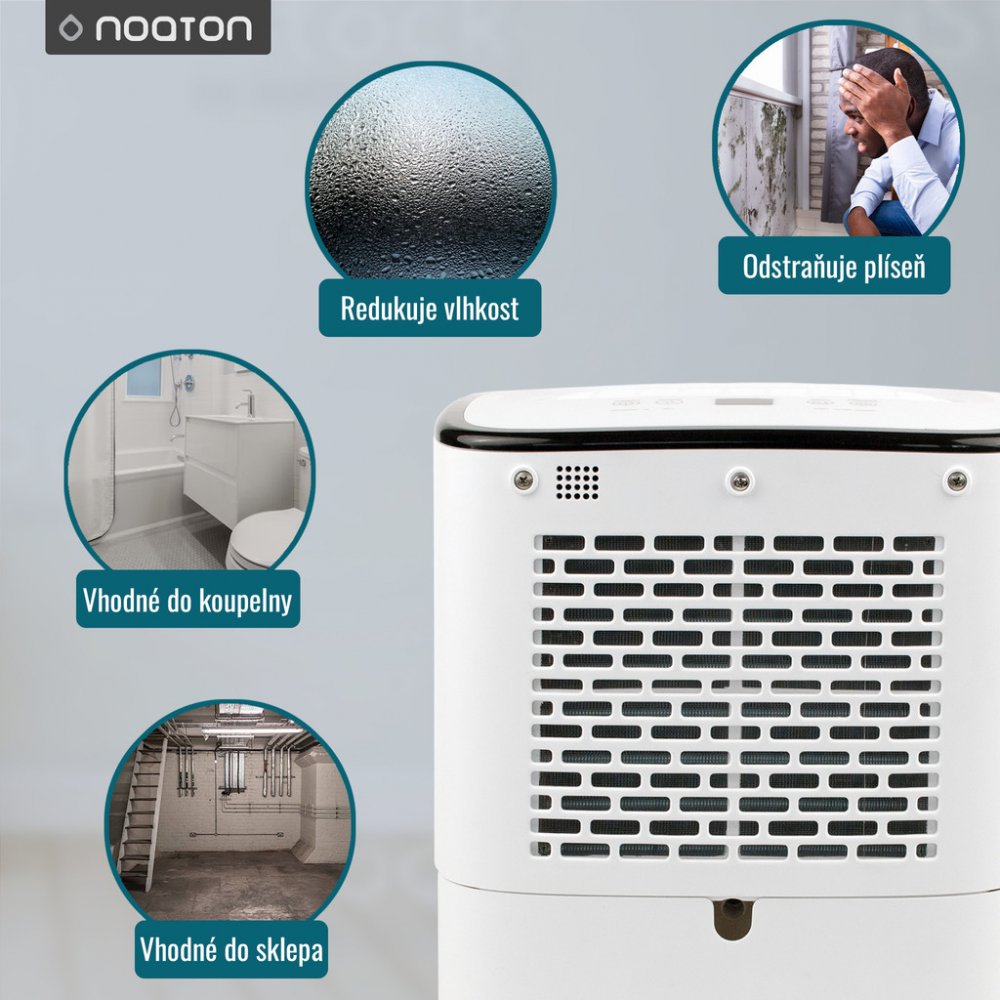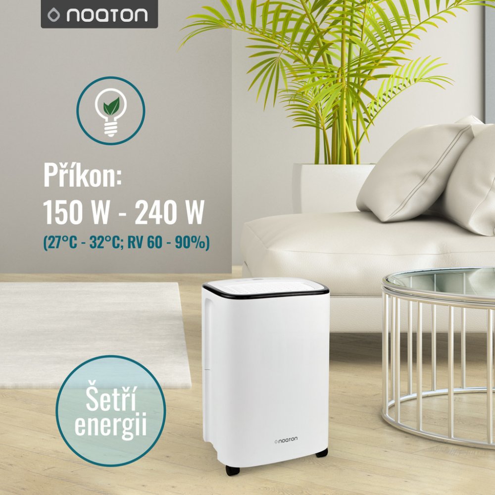Noaton 2.5 l 43 dB 0.5 l/hod 7.8 kg 12 l/24h 414 x 290 x 240 mm 190 W kondenzační domácí