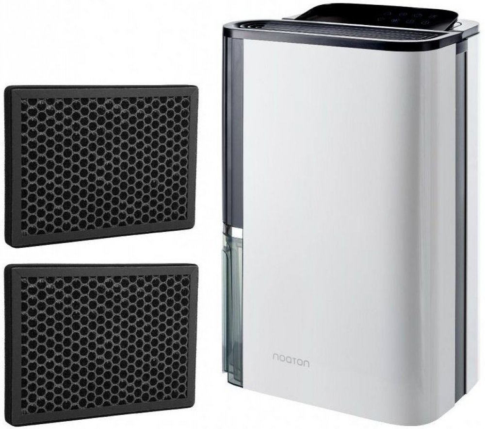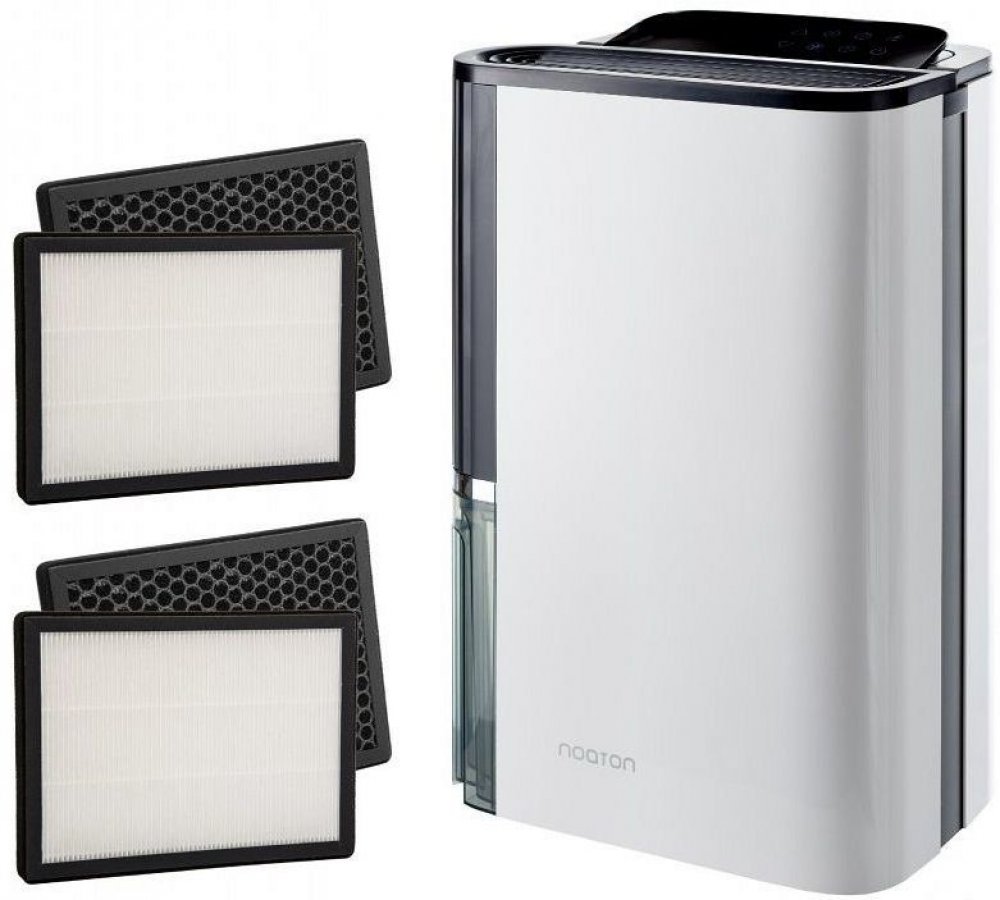 Noaton DF 4123 HEPA Multifunkční výkonný odvlhčovač a čistička vzduchu Noaton DF 4123 HEPA patří mezi novinku na evropském trhu. Díky jeho praktické využitelnosti, jednoduché manipulaci a nadčasovému vzhledu je vhodným a elegantním pomocníkem v domácnosti. Přístroj může pracovat ve třech režimech - čistička vzduchu, odvlhčovač vzduchu nebo obojí zároveň. Disponuje ionizátorem, který lze vypnout. Přístroj je nenápadný a tichý - v místnosti o něm skoro ani nevíte. Navíc je velmi úsporný, což ocení vaše peněženka. Primárně přístroj slouží jako odvlhčovač vzduchu. Vložením filtru z něj ale uděláme čističku vzduchu. Dokonce můžeme obě funkce spustit naráz, tudíž je možné vzduch odvlhčovat a zároveň čistit. V balení naleznete HEPA filtr. Dokoupit lze kombinovaný HEPA + kvalitní uhlíkový filtr. V čem odvlhčovač Noaton DF 4123 vyniká? 1. Nízká spotřeba Ve své kategorii disponuje kombinovaný odvlhčovač a čistička Noaton velmi nízkou spotřebou. 330 W (při 35°C a RV80%), 240 W (při 27°C a RV60%), 28 W - režim čištění vzduchu 2. Čištění vzduchu Druhou hlavní funkcí přístroje je čištění vzduchu a vytvoření příjemného klimatu v naší domácnosti. Tento odvlhčovač lze vybavit vysoce účinným HEPA filtrem kombinovaným s uhlíkovým filtrem, který dokáže odstranit ze vzduchu pyly, alergeny, pach a kouř. Funkci čištění pomáhá i vypínatelný ionizátor. 3. Dvě možnosti drenáže Odvlhčovač má vlastní nádrž na vodu o objemu 4,5 litrů. Když se nádrž naplní po okraj, na displeji se objeví příslušná kontrolka a přístroj se automaticky vypne. Když Noaton DF 4123 používáte v místě s opravdu vysokou vlhkostí, můžete zajistit kontinuální odvod vody pomocí hadice. 4. Další užitečné funkce Automatické udržování vlhkosti Časovač Funkce sušení prádla ochrana proti přetečení s automatickým vypnutím Dětská pojistka Podsvícený ukazatel vlhkosti drenážní hadice držadlo