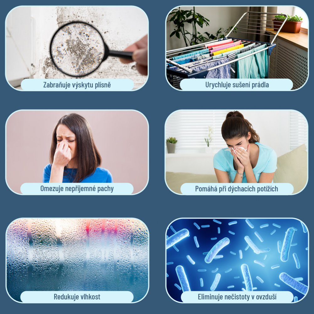 Domácí odvlhčovače vzduchu bojují proti vzniku plísní a jsou obzvláště vhodné pro lidi s respiračními problémy (astmatiky, alergiky), lidi staršího věku a děti.