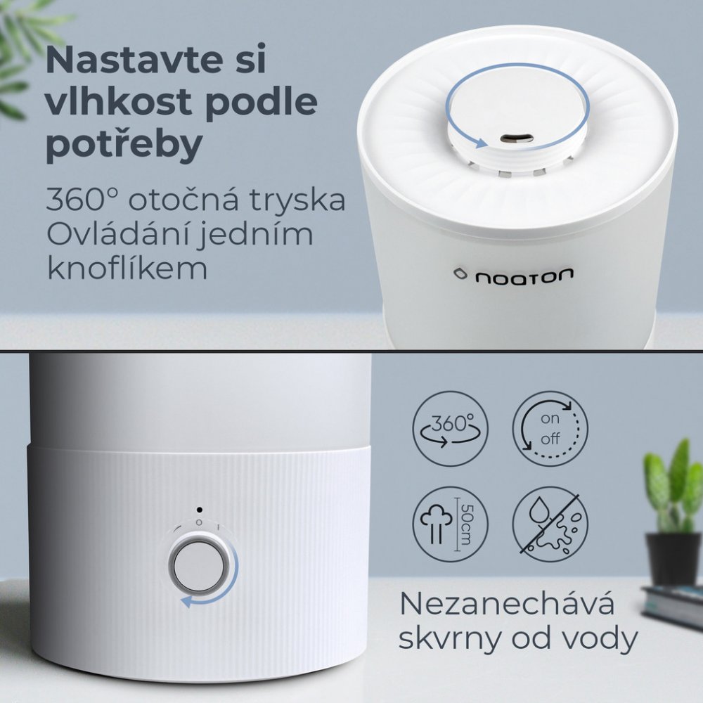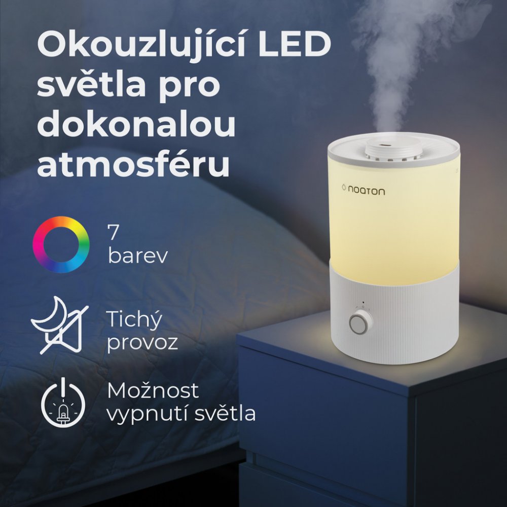 Máte ve vaší domácnosti suchý vzduch a rádi byste to změnili? Zvlhčovač vzduchu Noaton vám nabídne řešení tohoto problému. S výkonem 250 ml/hod bude vzduch v místnosti vlhčí během chvilky. Maximální účinnosti tento zvlhčovač dosáhne v místnosti o rozloze do 30 m². S objemem nádržky 3,3 l je zaručeno dlouhodobé zvlhčování vzduchu a tak nemusíte nádržku často naplňovat. Technologie studeného odparu ...