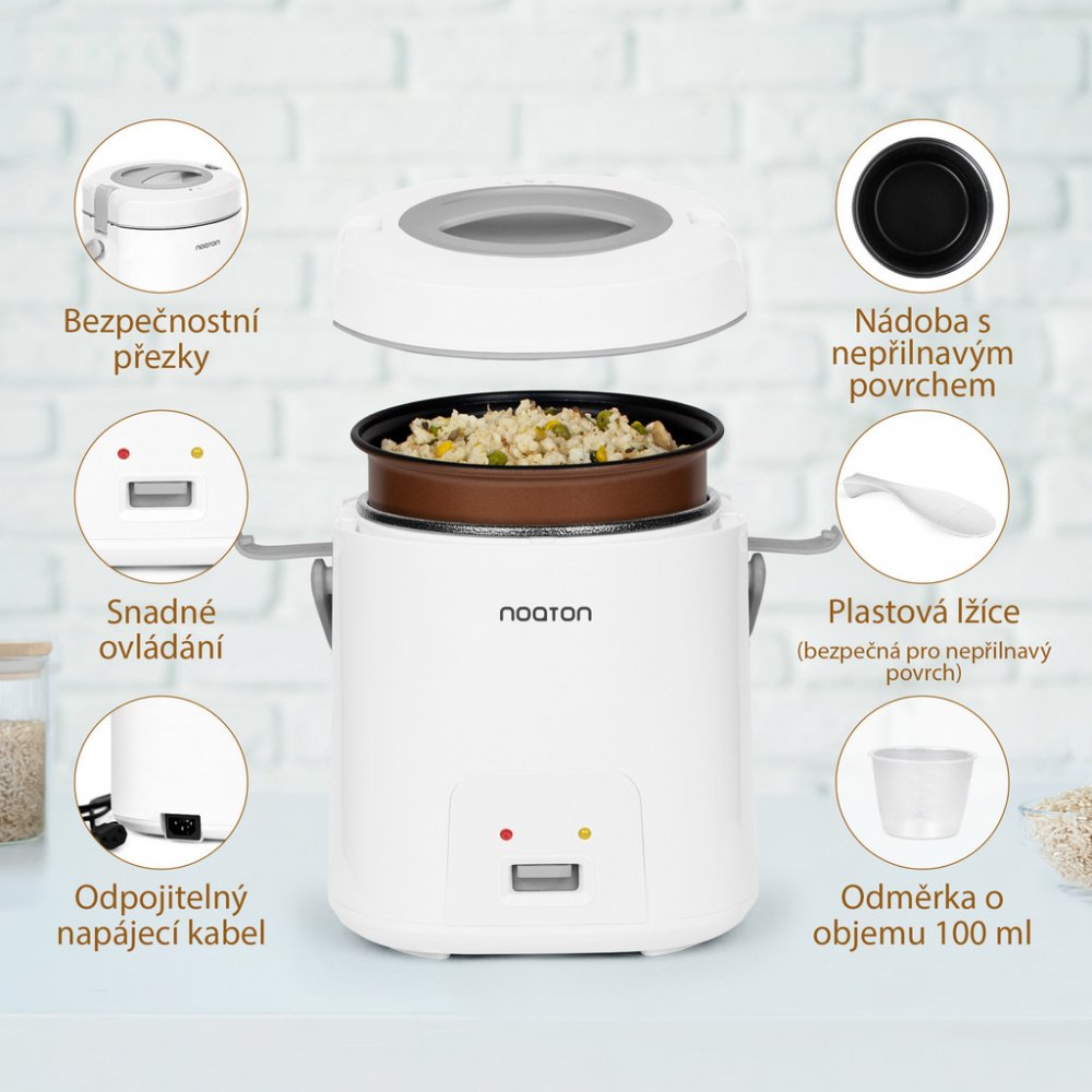 - Funkce udržování tepla, automatické vaření rýže, automatické vypnutí, ochrana proti přehřátí, ochrana proti přetečení