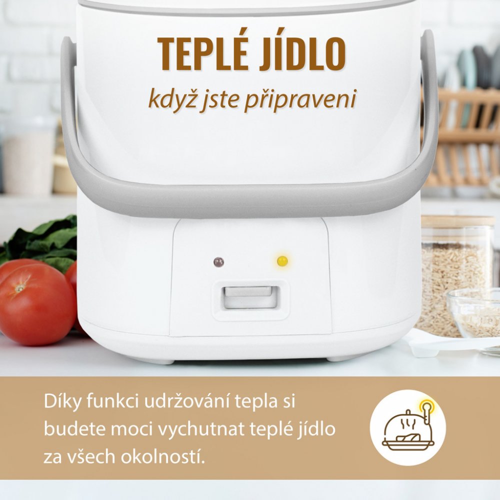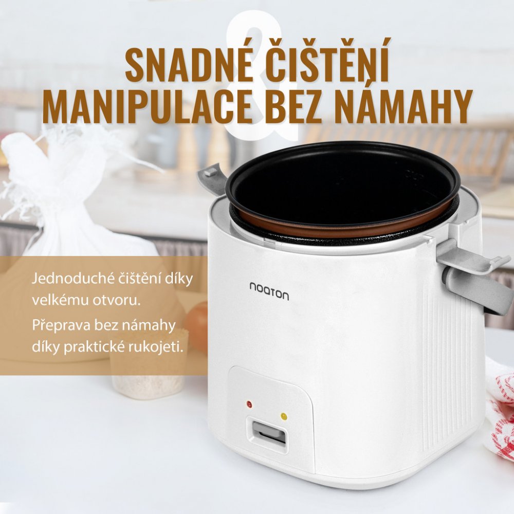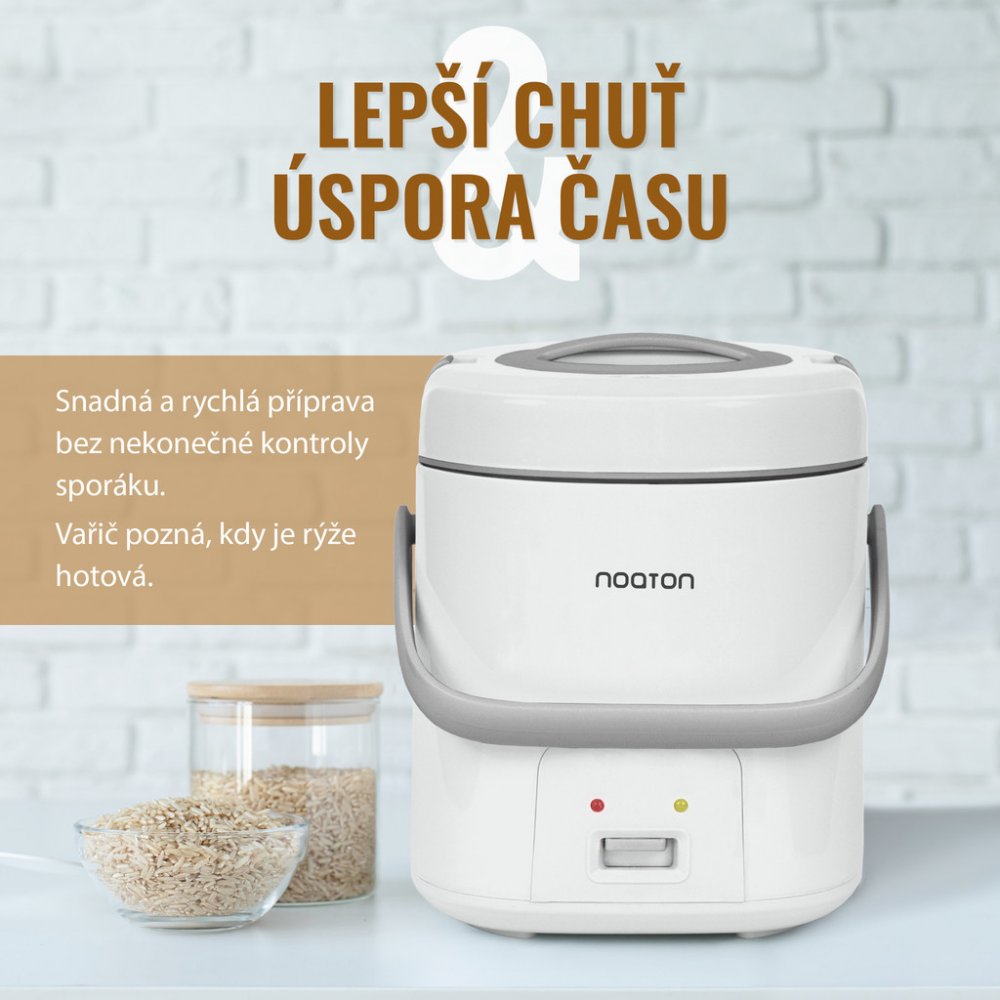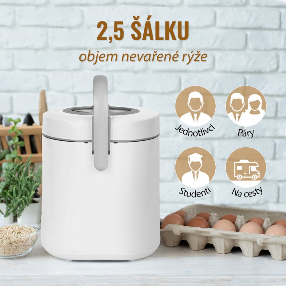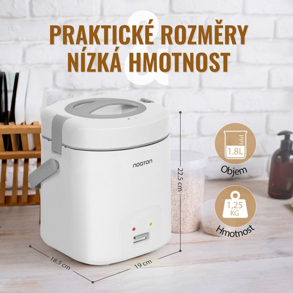 Rýžovar je skvělý pomocník do domácnosti, který ušetří nejen místo na plotně, ale především čas. Objem nádoby 1,8 l, díky které přístroj uvaří až 450 ml syrové rýže.