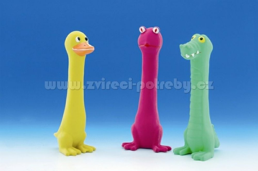 Latex nepoškozuje psí zuby a je nezávadný i při náhodném požití. Latexová hračka na hraní pro psy menší a střední velikosti, s pískátkem, ke žvýkání a aportování.