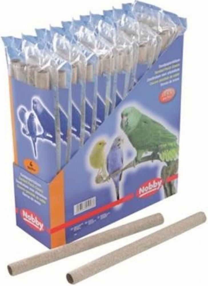 Papírové trubičky pokryté pískem pro andulky a kanáry. Jedna tyčinka vydrží 1-2 týdny. Použití: nasuňte na bidýlko. Ptáci si o pískový povrch mohou brousit drápy a zobák.