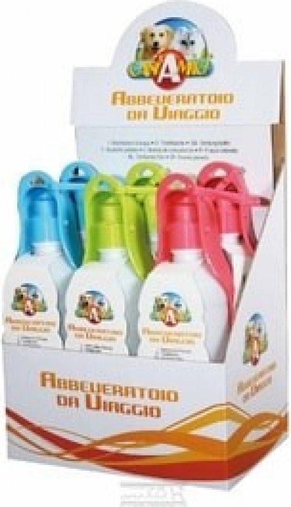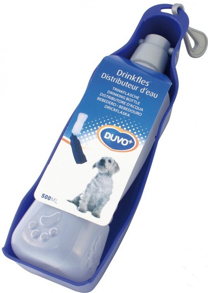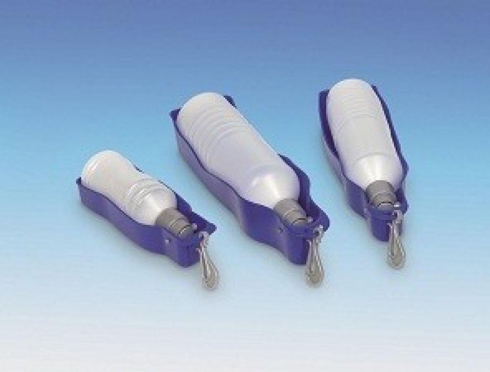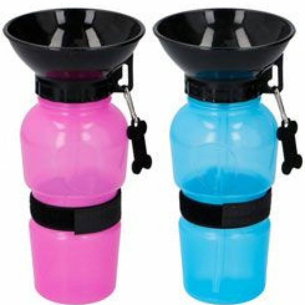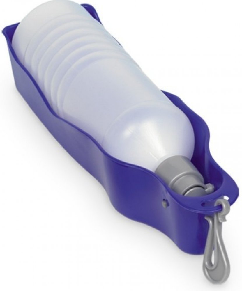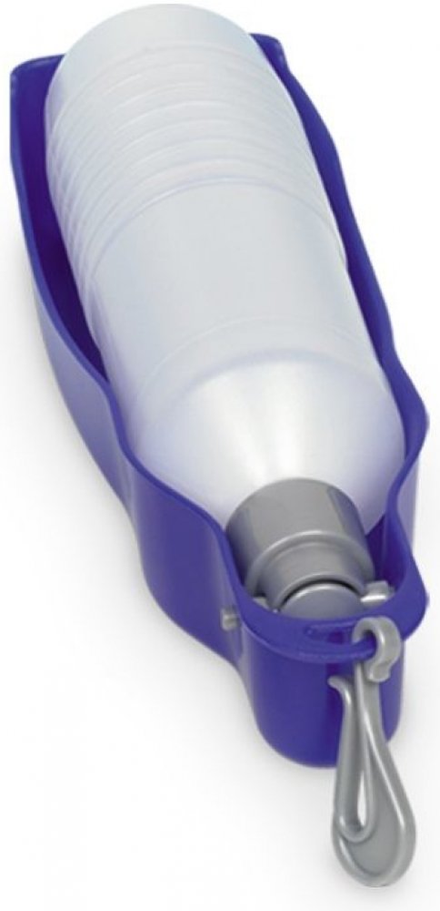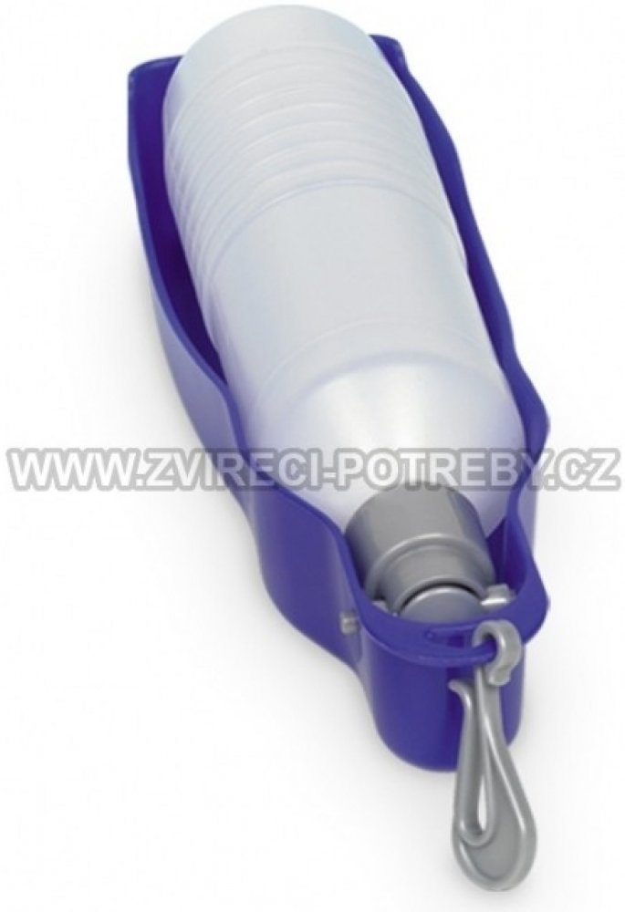 Cestovní láhev na vodu s miskou. Taková láhev Vám vyřeší problém s občerstvováním. S karabinou pro upevnění.