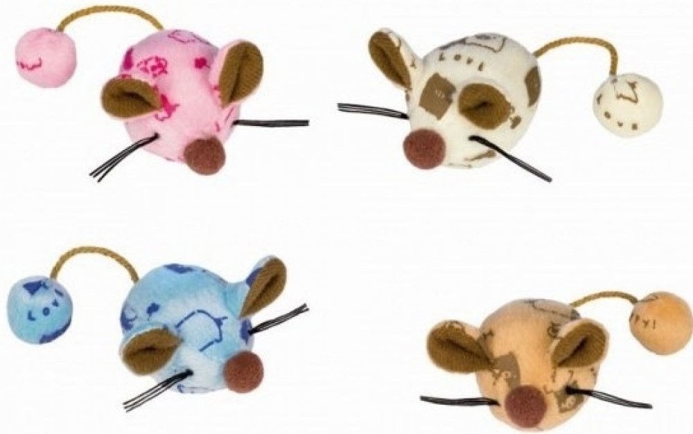 Hračka pro kočky v podobě myšek , velikost 6 cm (bez ocasu). Hračka s chrastítkem a je plněná sušenou šantou kočičí. Balení obsahuje 2 ks. Dodávané různé barvy.