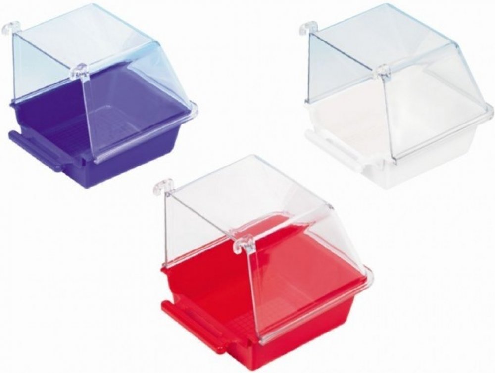 Koupelna pro malé papoušky do klece. Vyrobeno z plastu. Dodávané různé barvy.