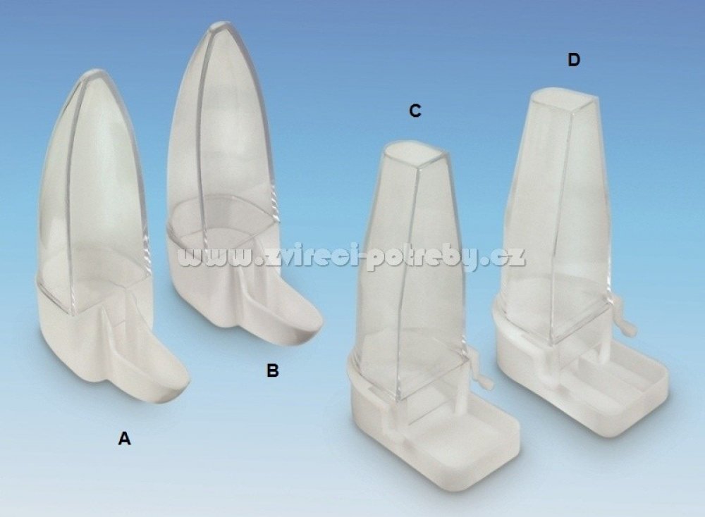 Napáječka na vodu pro papoušky. Uzpůsobena pro pro příčné vedení. Vhodné např. pro andulky, kanárky.