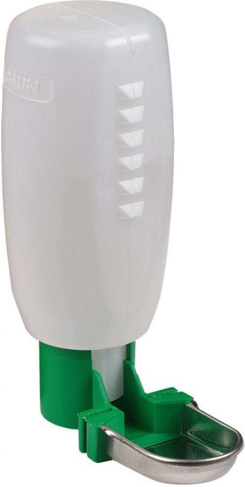 Hladinová napáječka s nerezovou miskou. 0,5l Objem 0,5 l. Velikost: 11 x 19 cm.