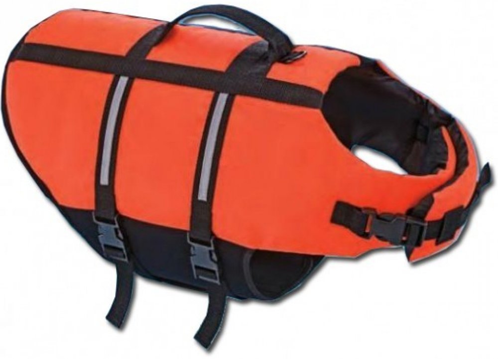 Reflexní záchranná plovací psí vesta. Rychle a snadno nastavitelná. Komfort při nošení díky anatomickému tvaru. Ochrana při plachtění, při vodních hrách a výletech na lod, více bezpečí při hraní a trénování ve vodě. Nylonové popruhy se zapínáním. Možnost prát na 30°C. Velikost L - 40 cm odpovídá délce hřbetu psa (od krku ke kořeni ocasu). Vzhledem k tomu, že psí ocas do značné míry napomáhá změnám směru při plavání, neměla by vesta překrývat kořen ocasu. Barva oranžová. Rychlé stanovení polohy zajišťují signalizační barvy a reflexní pruhy. Záchranná vesta pomáhá chránit vašeho psa při vodních sportech, skákání do vody, nebo pádu přes palubu. Tyto vesty mají záchytné madlo na hřbetní straně pro snažší zachycení a vyzdvižení psa do lodi a kontrastní dvoubarevné provedení a reflexní pruhy pro lepší viditelnost.