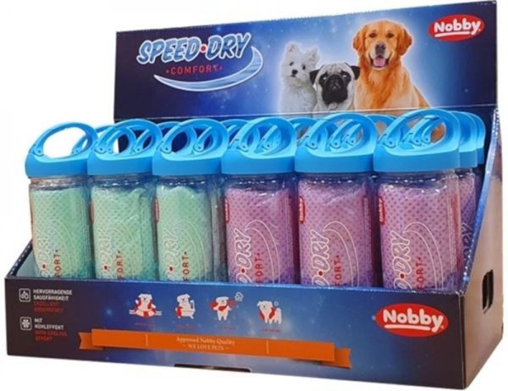 Ručník z PVA materiálu, vysoce absorpční schopnost. Po vyždímání ihned extrémně savý. Nepohlcuje do sebe pach. Můžete jím očistit psa či kočku od špíny a prachu po příchodu z procházky, aniž byste museli koupat. Vlhký ručník může být použit pro ochlazení psa v létě.