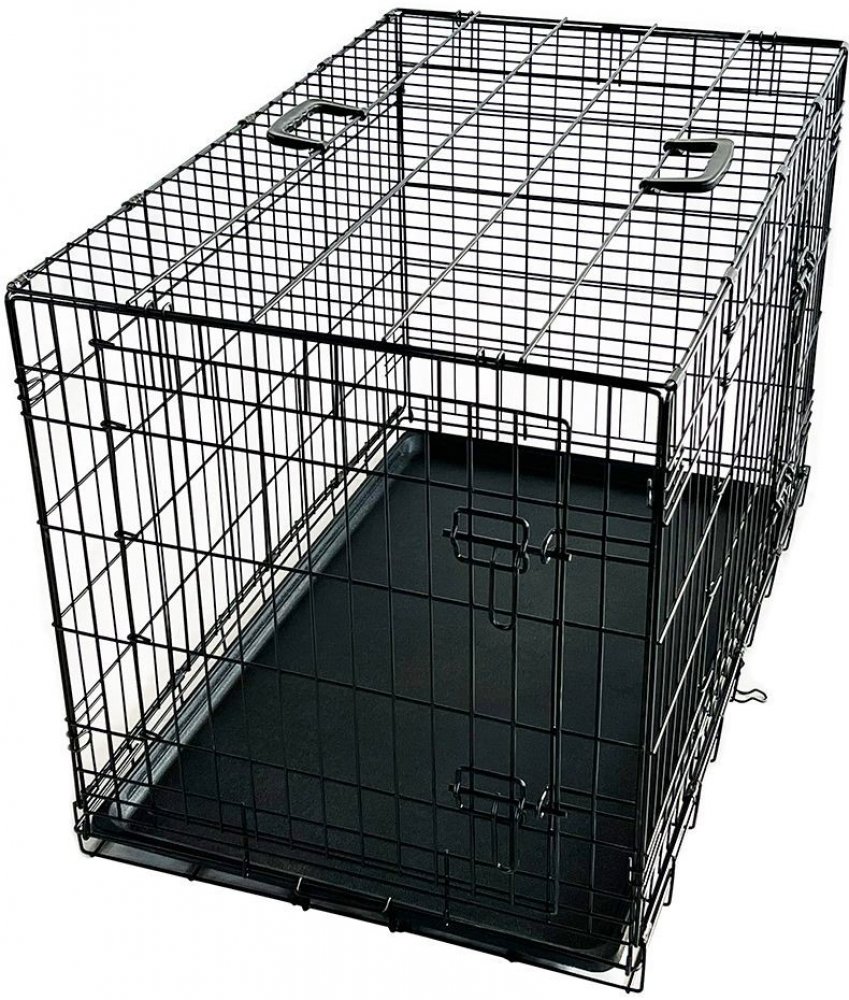 Praktická skládací klec značky Nobby. Klec má dvoje bezpečně uzavíratelné dveře (jedny vpředu a jedny z boku) a dá se jednoduše a rychle složit a rozložit, potřebujete-li šetřit místem.