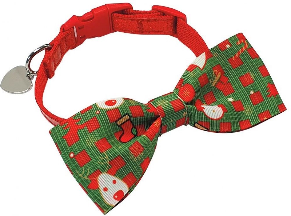 Ozdoba textilního motýlka ve vánočním designu dodává obojku styl a jedinečnost.