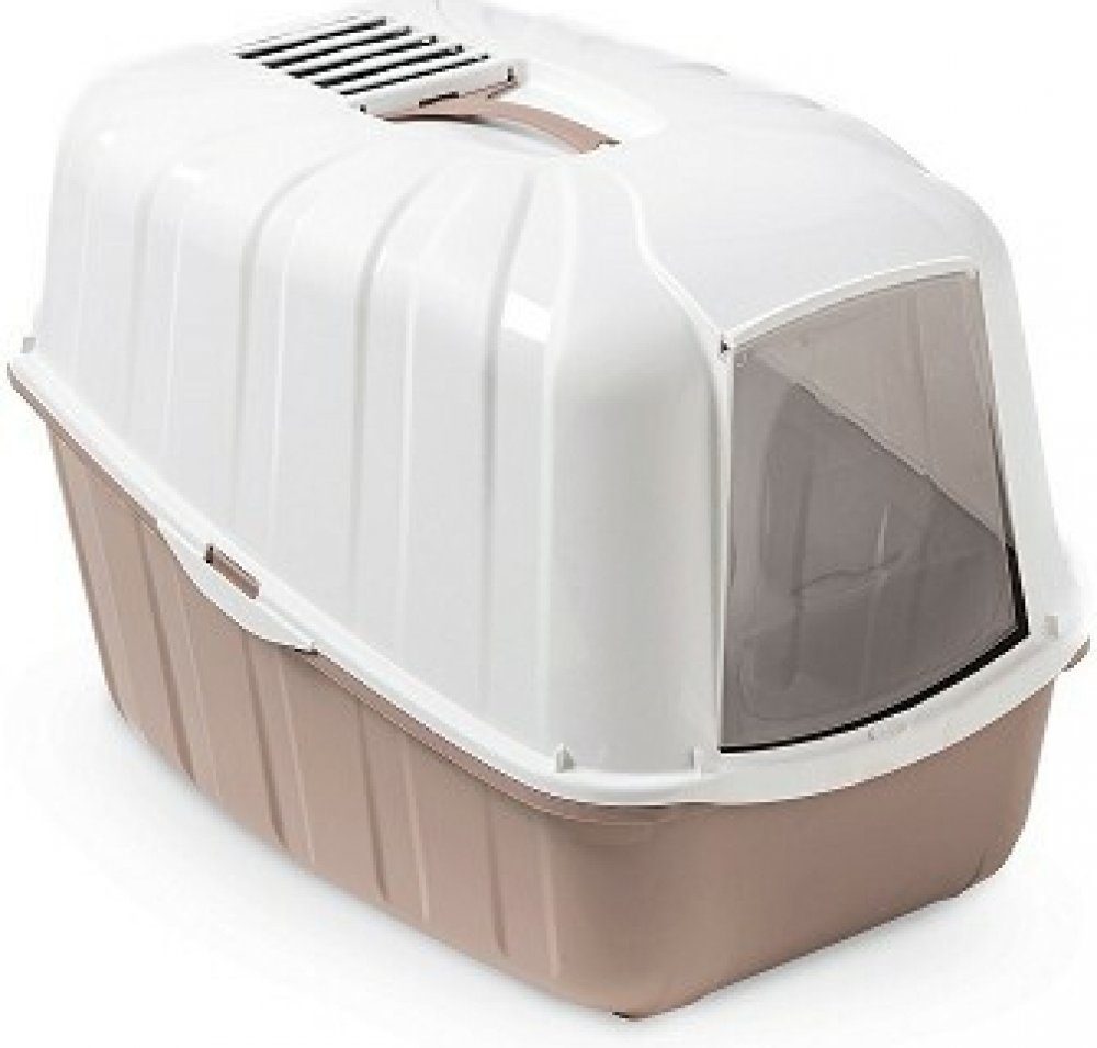 Toaleta pro kočky z lehkého plastu. Včetně čistící lopatky. Vybavena filtrem z aktivního uhlí a lítacími dvířky.