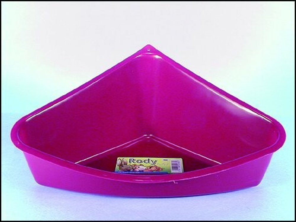 Popis: Plastová rohová toaleta. Umístěním do rohu klece minimalizujete omezenost v ubikaci a zároveň si usnadníte údržbu hygieny. Nezapomeňte dát do toalety vhodnou podestýlku. Svojí velikostí vhodná pro morčata, potkany a zakr. králíky.