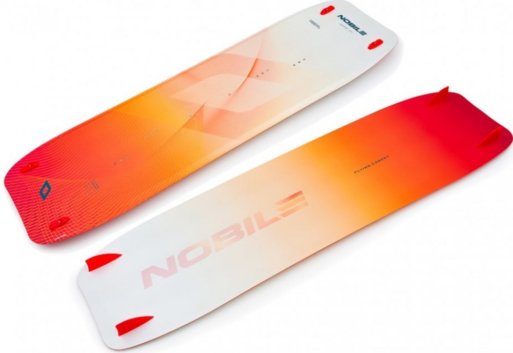 Začínáš nebo chceš jen využít slabého větru? NOBILE Flying Carpet je skvělá low windová mašina a také vybavení do škol pro všechny začátečníky. NOBILE Flying Carpet je deska, která tě okamžitě zvedne a pojede. Rozměry Flying Carpetu umožňují i těžšímu uživateli příjemnou jízdu ve slabém větru.Velikost kiteboardu a plochý rocker v kombinaci se systémem Wavy Channels vytváří menší tření a zjednodušuje tak první krůčky v kiteboardingu. Navíc je oproti loňskému modelu lehčí.Navzdory své velikosti umožňuje Flying Carpet jedinečně pohodlnou a stabilní jízdu díky konstrukci AirLight Core, zatímco dlouhá zadní hrana v asymetrickém tvaru zaručuje solidní výkon proti větru. Deska, která poskytuje zábavu za slabého větru. Asymetrický banana tvar vytváří skvělé vlastnosti při stoupání proti větru.