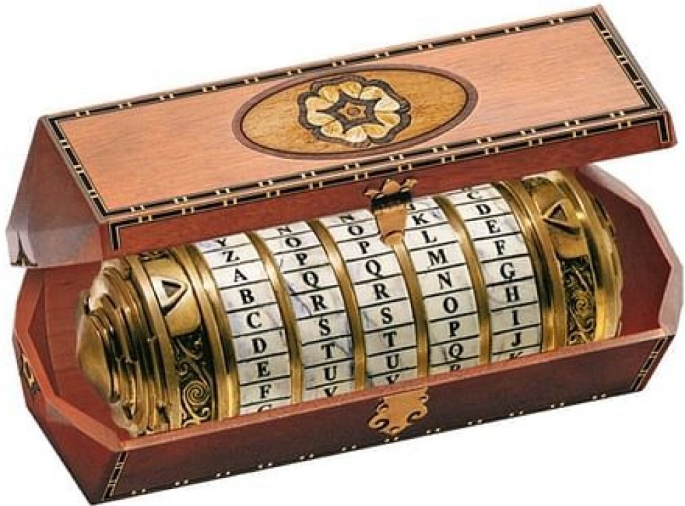 Přesná replika Cryptexu na motivy filmu Šifra Mistra Leonarda! Tento krásný kousek měří cca 15 cm, průměr 6,5 cm. Plně funkční Cryptex (základní heslo APPLE, může být změněno). V balení spolu s ochranným boxem.