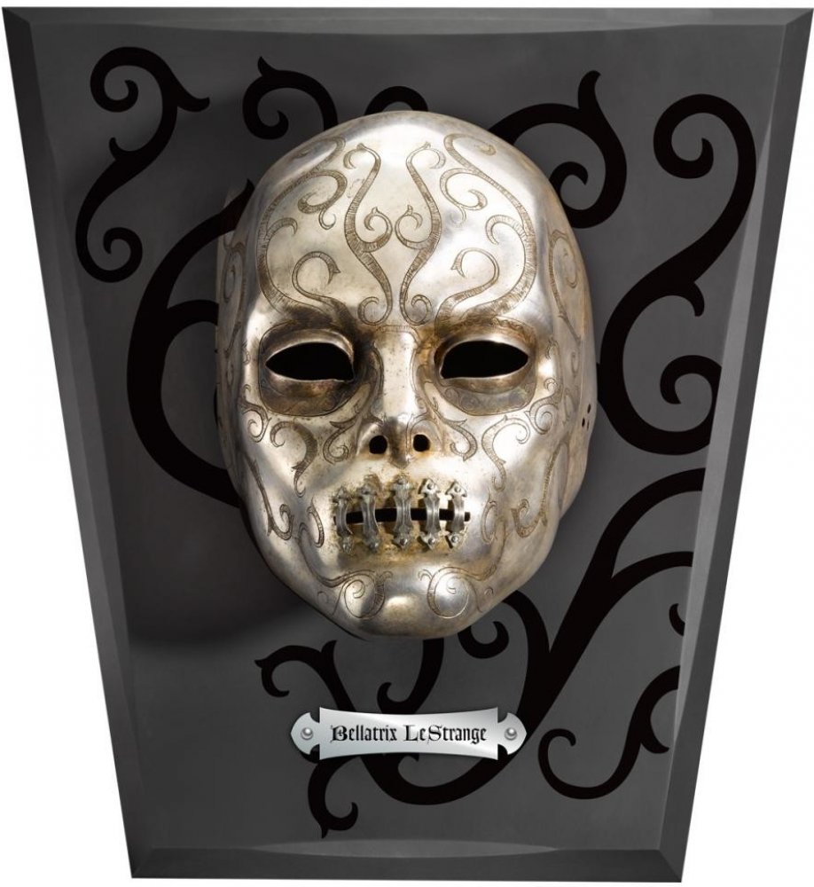Replika masky Bellatrix Lestrange, která byla první Smrtijedkou představenou v knihách Harry Potter.