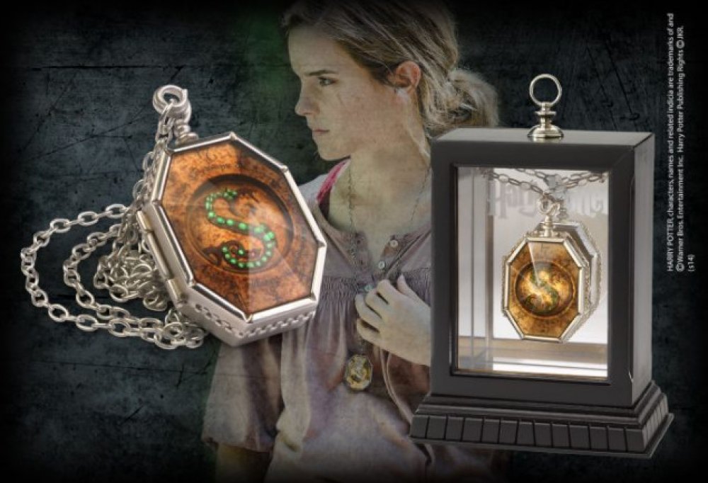 Voldemortův viteál v podobě Zmijozelova medailonku, který byl skrytý v mořské jeskyni. Medailonek je opatřen řetízkem a lze jej otevřít. Velikost je přibližně 6 x 3,5 cm, délka řetízku pak 60 cm. Medailon je dodávám včetně stylového dřevěného boxu se zrcátkem. Rozměry box jsou 14 x 9,5 x 5,5 cm.