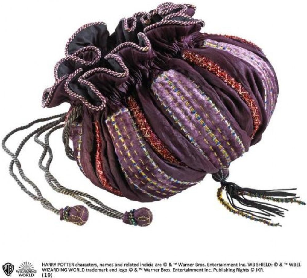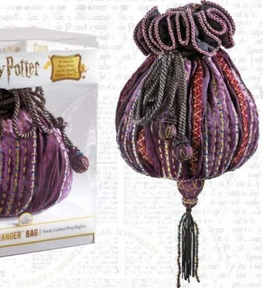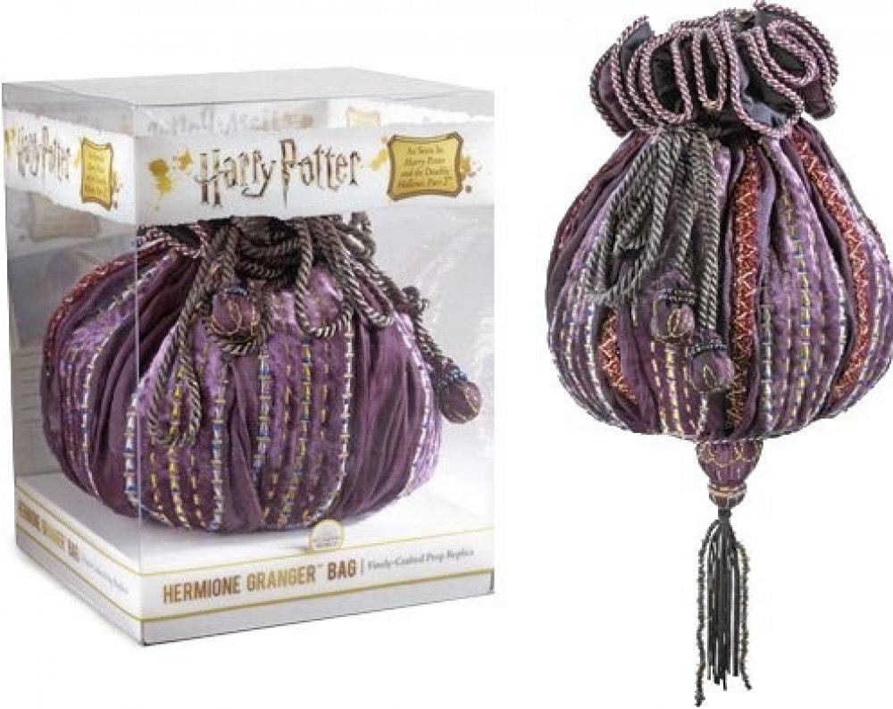 Oficiální filmová replika kabelky Hermiony Grangerové z filmu Harry Potter a Relikvie smrti. Vskutku nezapomenutelný kousek. Kabelka je šita z jemného a premiového materiálu. Výška přibližně 21 cm.