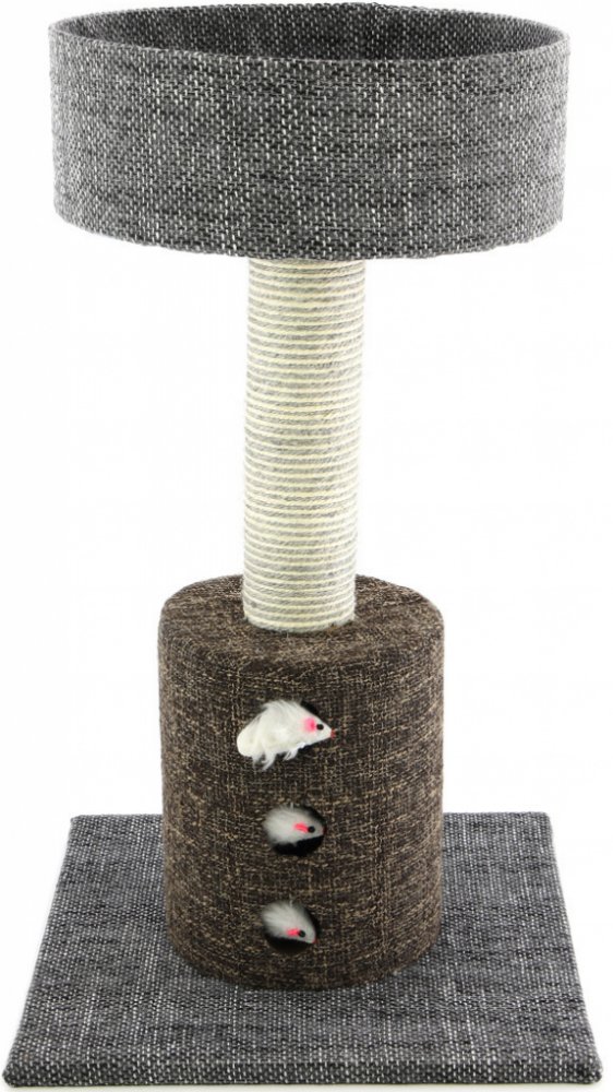 Vysoké odpočívadlo vykládané přírodní bavlněnou a lněnou tkaninou poskytne vašim kočkám bezpečný a krytý prostor na spánek i odpočinek, škrabadlo s opletem z konopného lanka zase skvěle poslouží ke škrábání a broušení kočičích drápků. Základna obsahuje tři důmyslně ukryté hračky pro kočky.