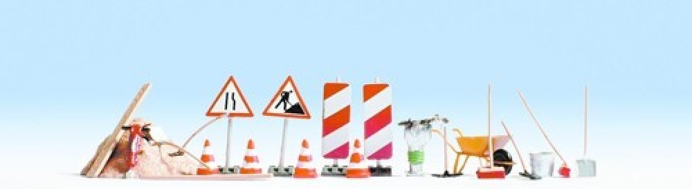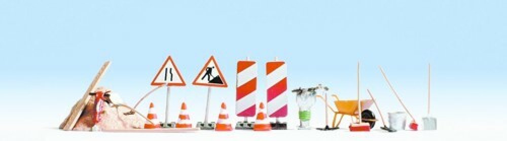 Set obsahuje výstražné dopravní značky, hromadu písku, sbíječku, kolečko a další ruční nářadí. Nevhodné pro děti do 15 let.