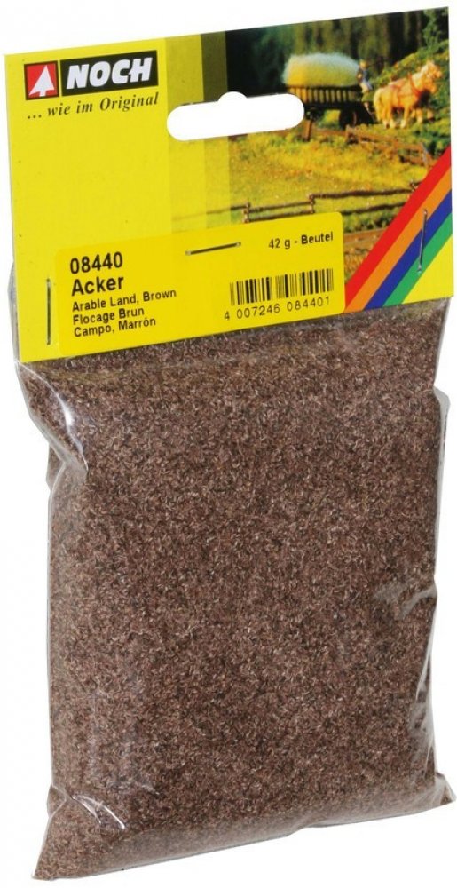 Náš oblíbený, obzvláště jemně zpracovaný materiál NOCH Scatter nabízí řadu možností pro realistické ztvárnění a zdobení modelových krajin a dioramat do nejmenších detailů. Každý jednotlivý odstín je jemně vyladěn z pestré škály barev. Můžete tak hned použít "čistý" odstín podle svého výběru, ale také můžete různé odstíny míchat a vytvořit si tak "speciální odstín" jedinečný pro váš maket. Hnědý materiál Scattering se obzvlášť dobře hodí pro návrh vřesovišť nebo lesů.
