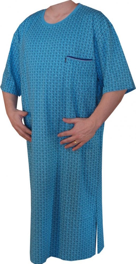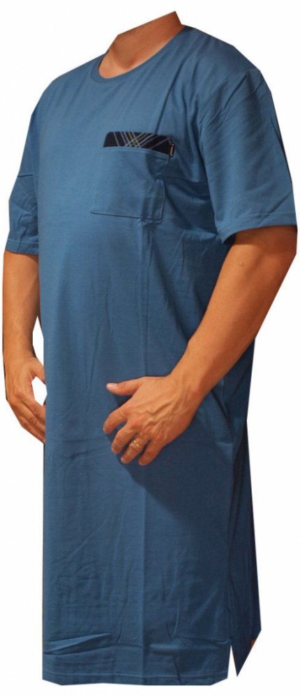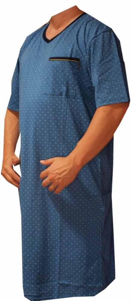 Noční košile pánská s krátkým rukávem barvy modré, je vyrobena z velice příjemného materiálu bavlna.